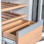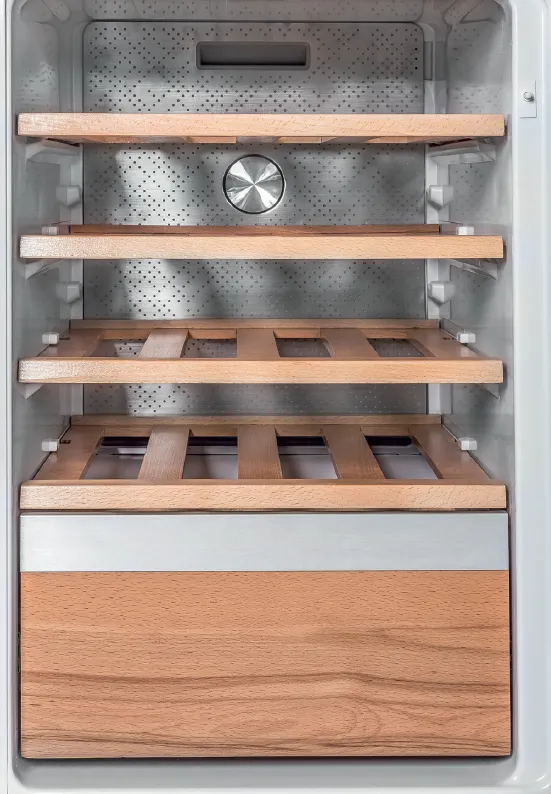 Un frigorifero esclusivo, la scelta intelligente per conservare in uno spazio unico sia il cibo che le bevande. La combinazione dei materiali e delle finiture, il legno di faggio dei ripiani e del cassetto e il vetro esterno, lo rendono davvero elegante e sofisticato. I ripiani possono conservare alla temperatura ideale, tra +5 e +16 gradi, fino a 25 bottiglie. In più c’è un comodo cassetto per altre bevande.